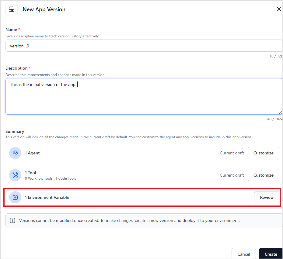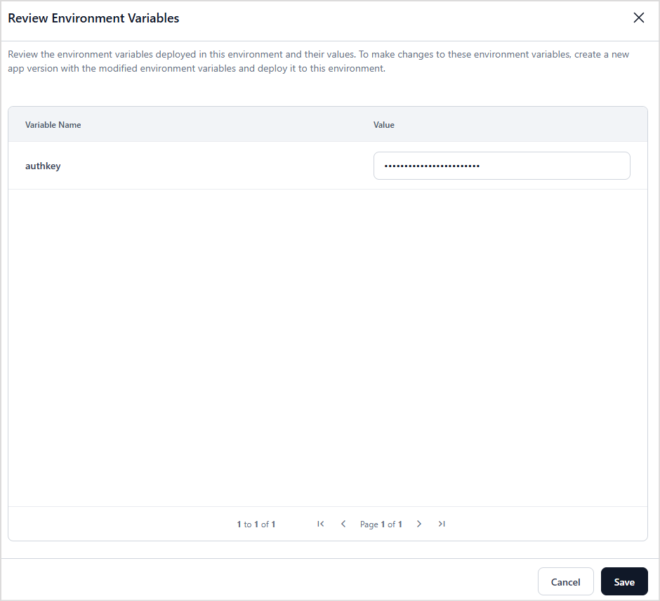 For instance, if a tool requires an authorization key that differs for each deployment, create an environment variable such as authKey and reference it within the tool. Assign a default value when creating the variable.