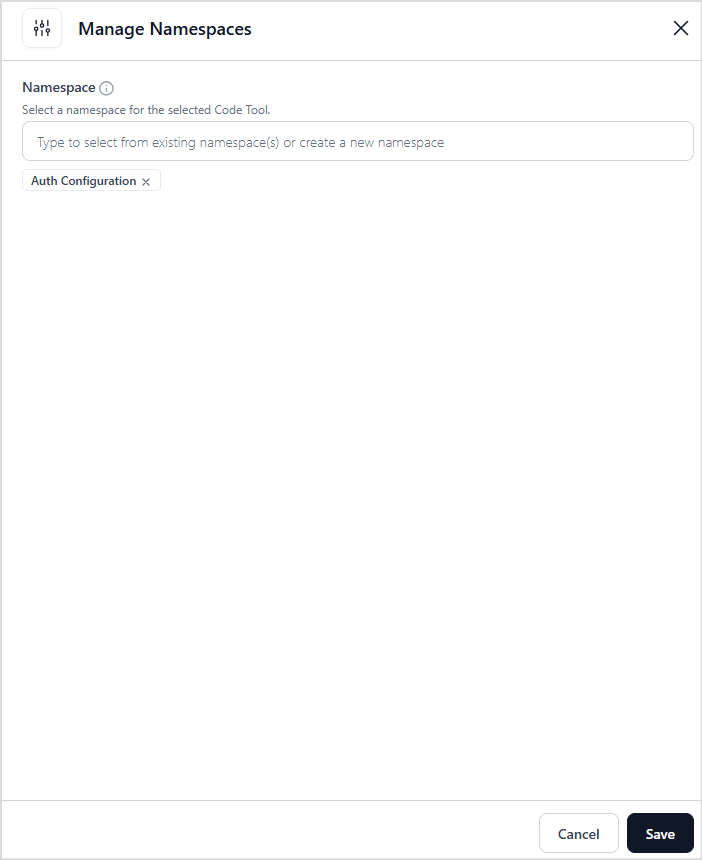 Associate the namespace to which the variable belongs and click Save. This makes all the variables required in the code tool accessible to it.