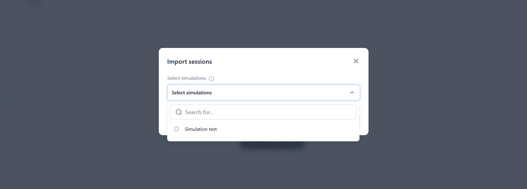 Choose the Simulation from which to import sessions and click Import.