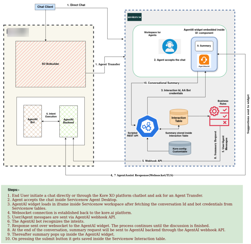Setting up Agent AI chat with ServiceNow consists of the following steps: