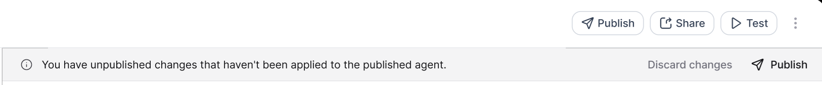 The banner displays: You have unpublished changes that haven't been applied to the published agent.