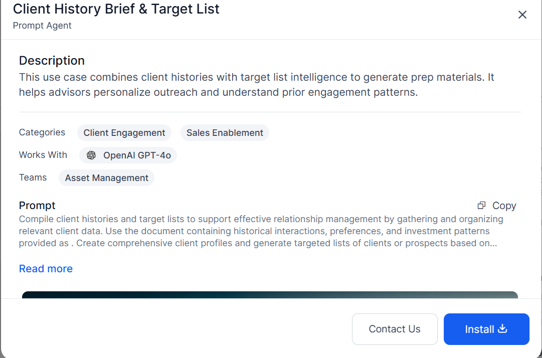 - Transparent Information: Understand each agent's functionality through detailed descriptions and previews before installing.