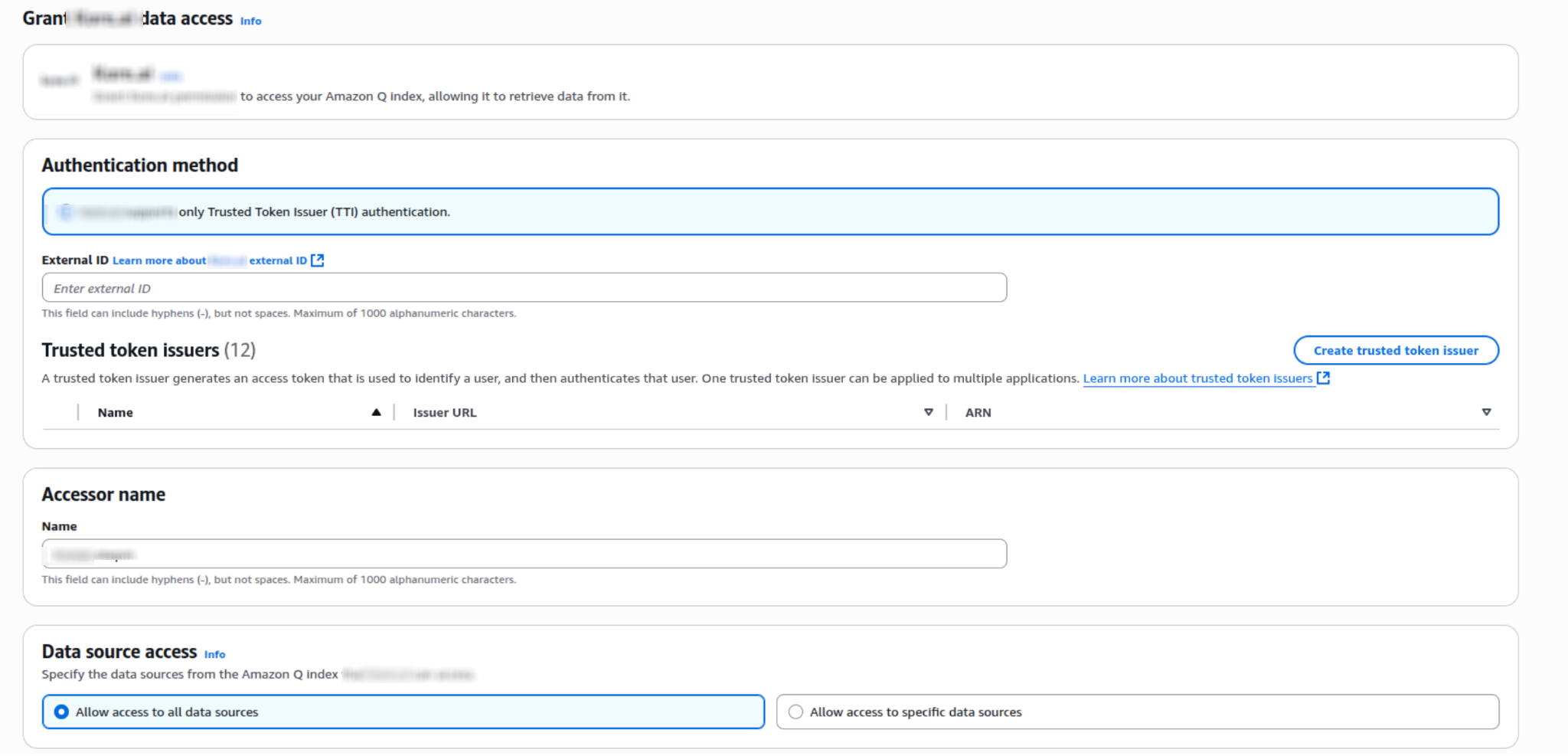 - Under Trusted token issuers, click Create trusted token issuer.