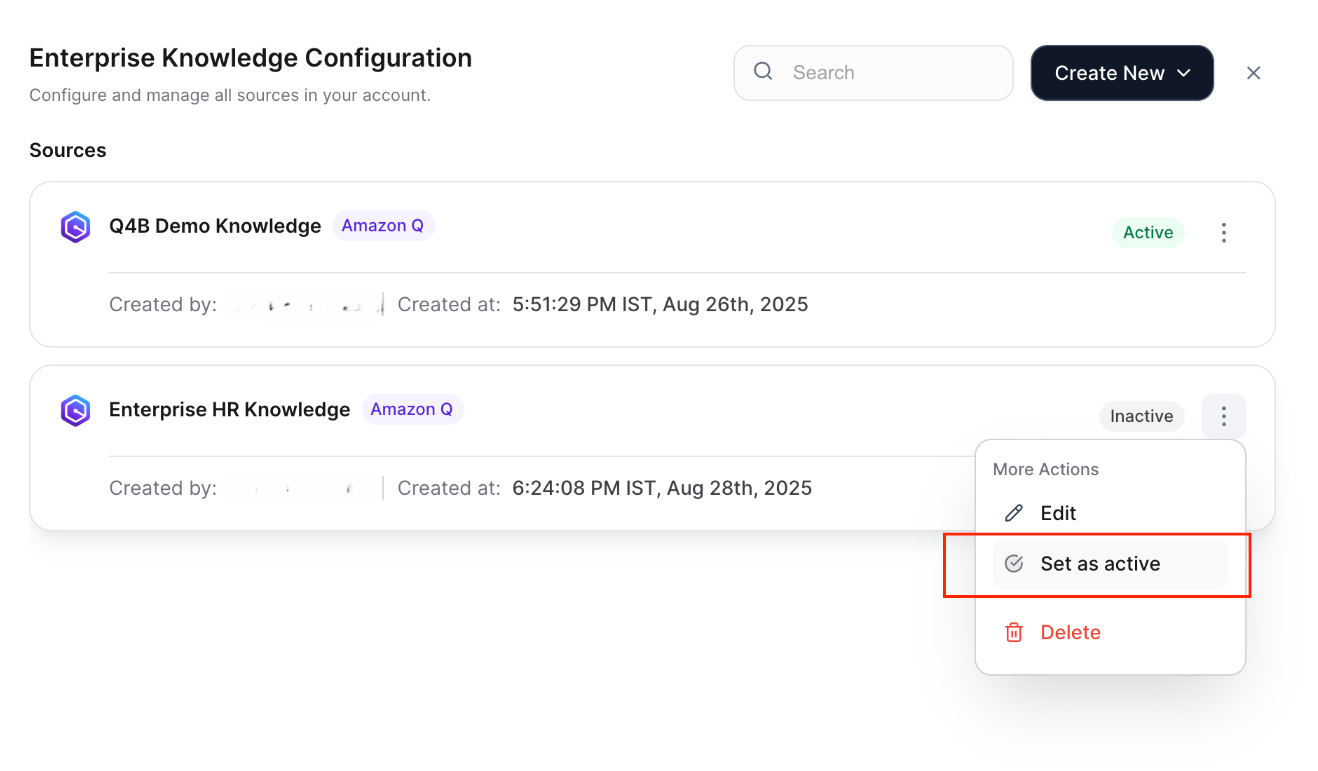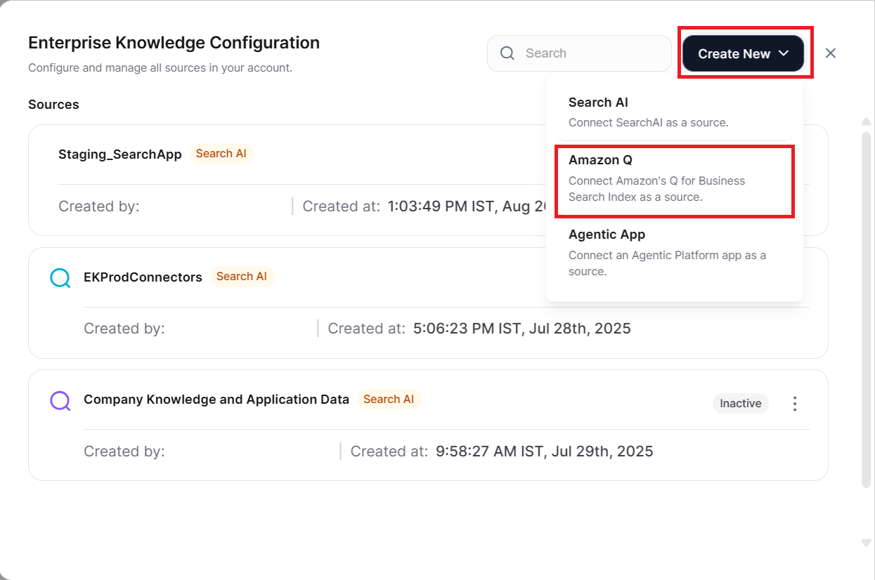 When you have multiple search indices, Amazon Q can be configured as a contextual search agent that triggers based on query context and intent recognition. For more information, refer Search Agent.