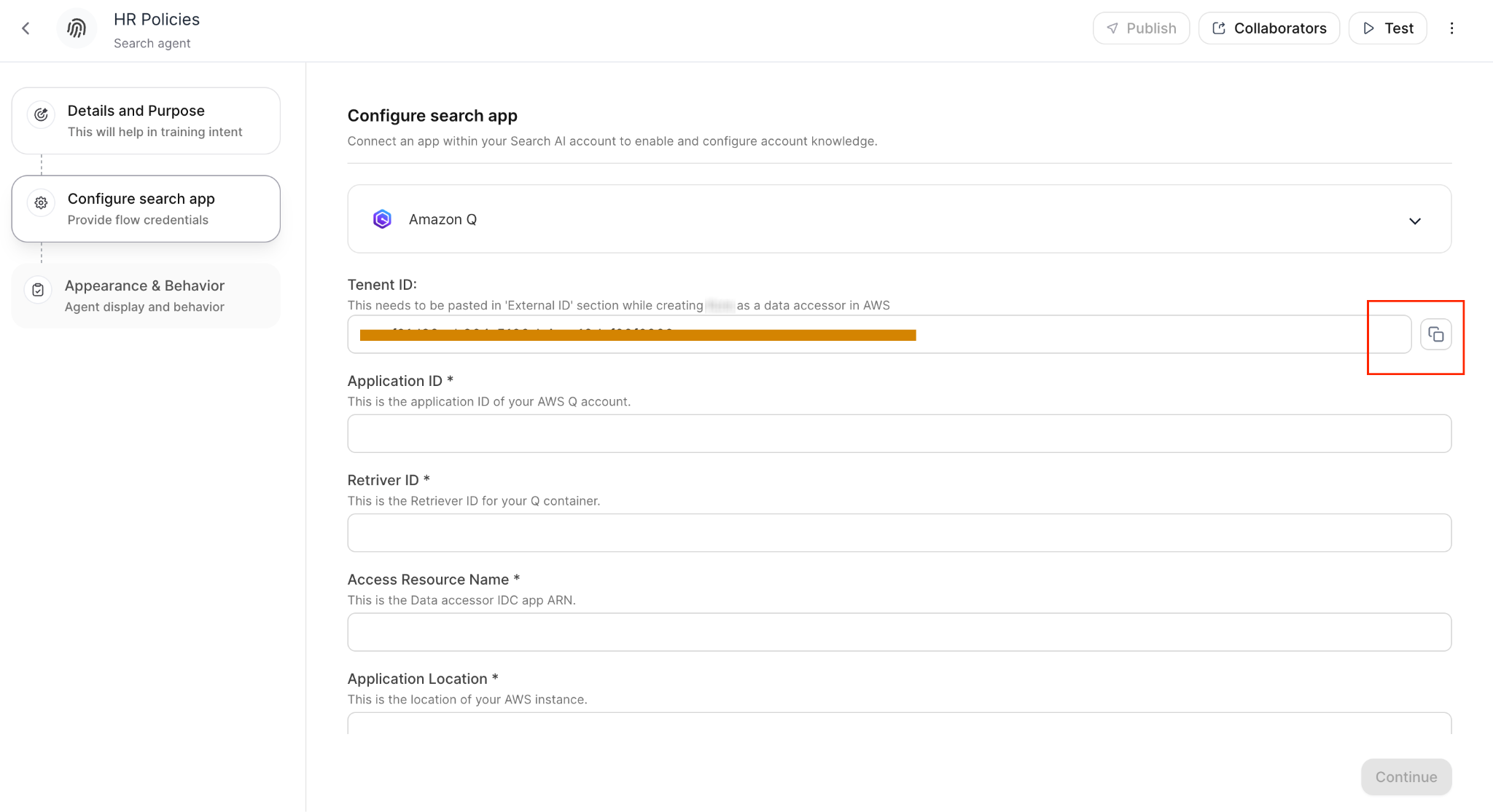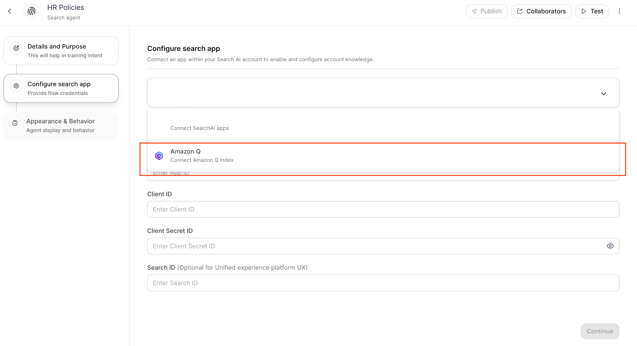 - Access Search Agent Configuration