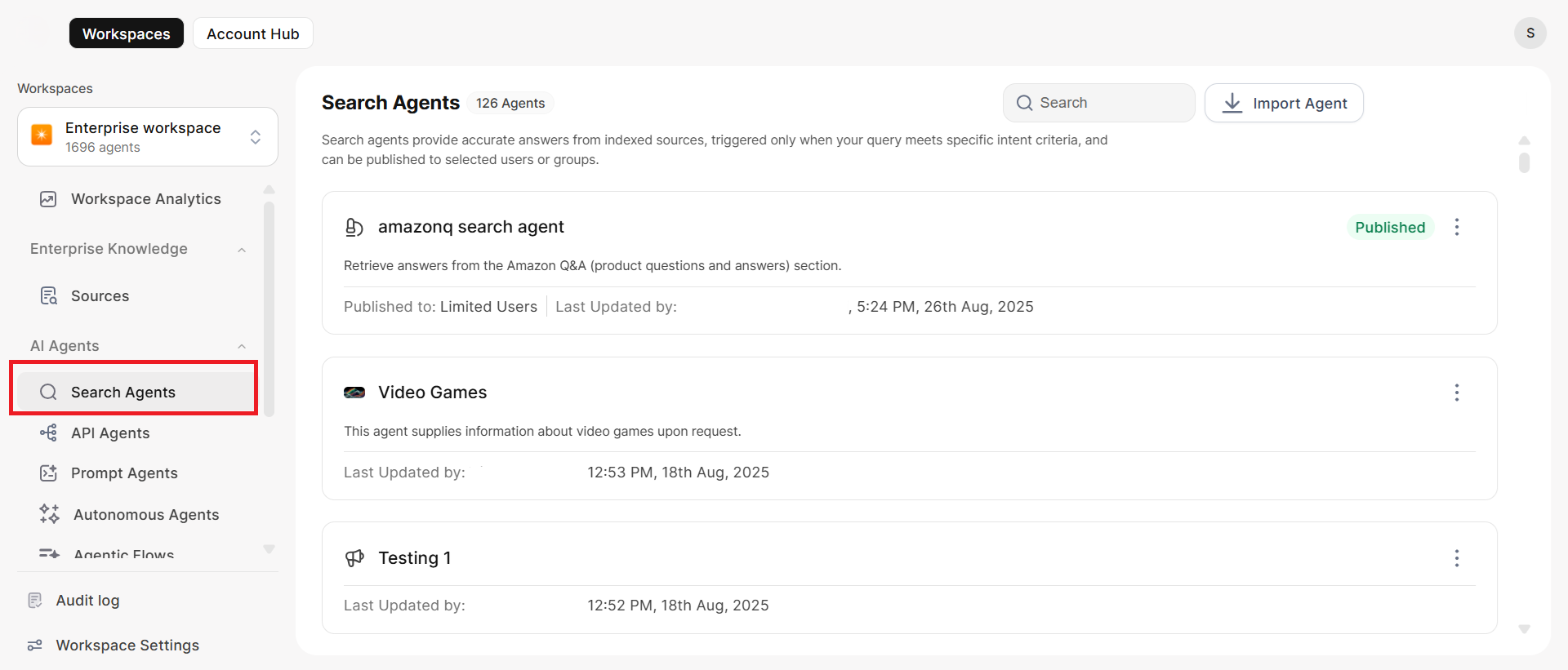 - Enterprise Knowledge becomes the default knowledge source accessible to all users in that workspace, when configured within a specific workspace.