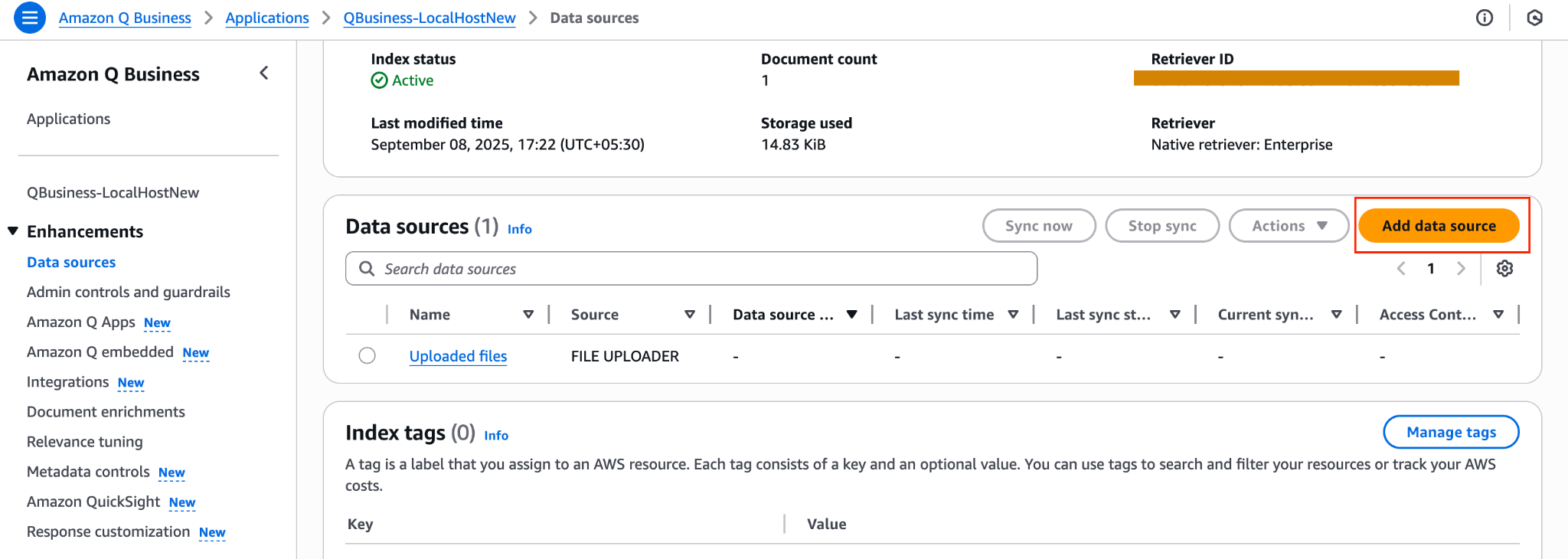 - Retriever ID: Unique identifier of your Amazon Q Business retriever.