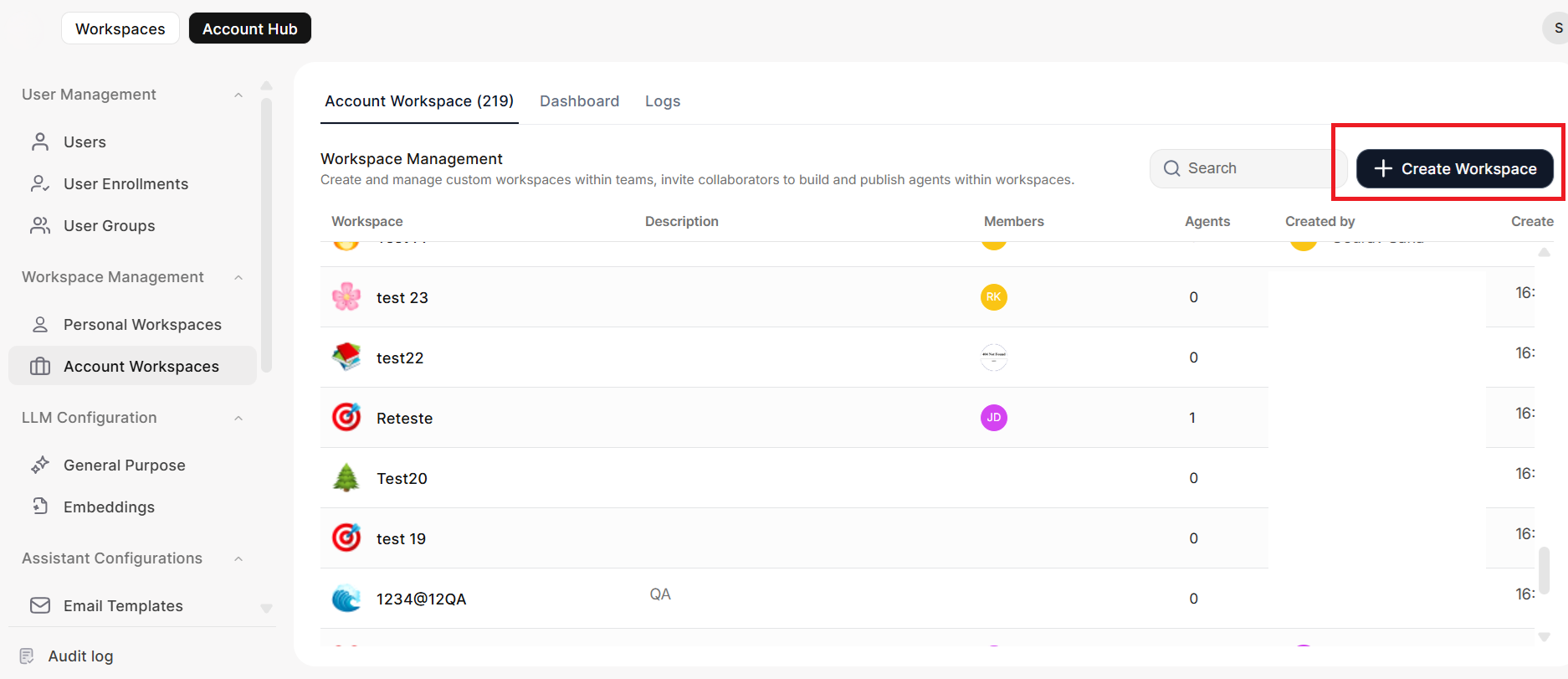 - Manage and configure agents within the workspace.