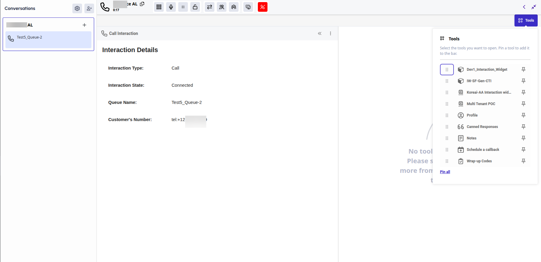 - Click Tools and select the interaction widget you configured in the previous steps.