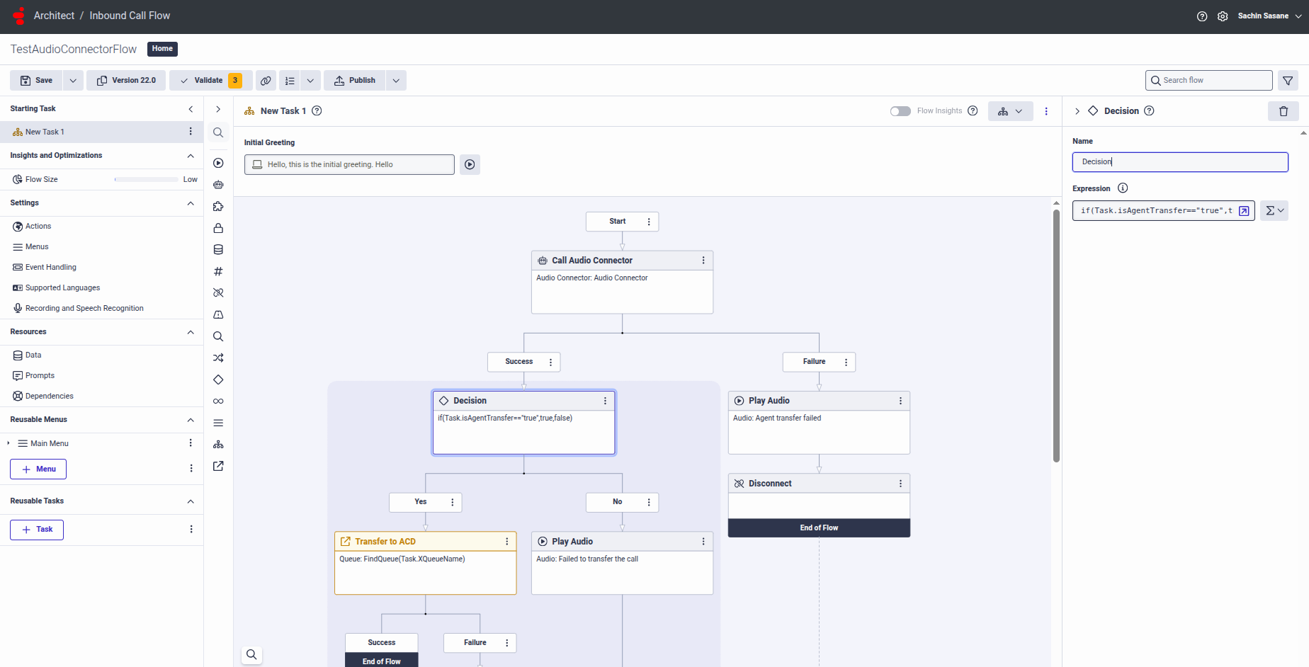 - Optional: Add an Agent Transfer node to transfer calls to agents in Genesys Cloud CX.