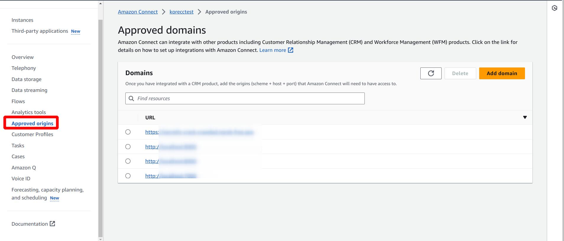 - Go to Amazon Connect> Instances.