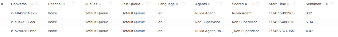 This report analyses agent interactions by summarizing each conversation’s sentiment, duration, and evaluation scores, along with key performance metrics, including total interactions, scorecard results, evaluation and audit scores, failure rates, coaching assignments, adherence indicators, and AI Justification (when enabled for Gen AI by question metrics).