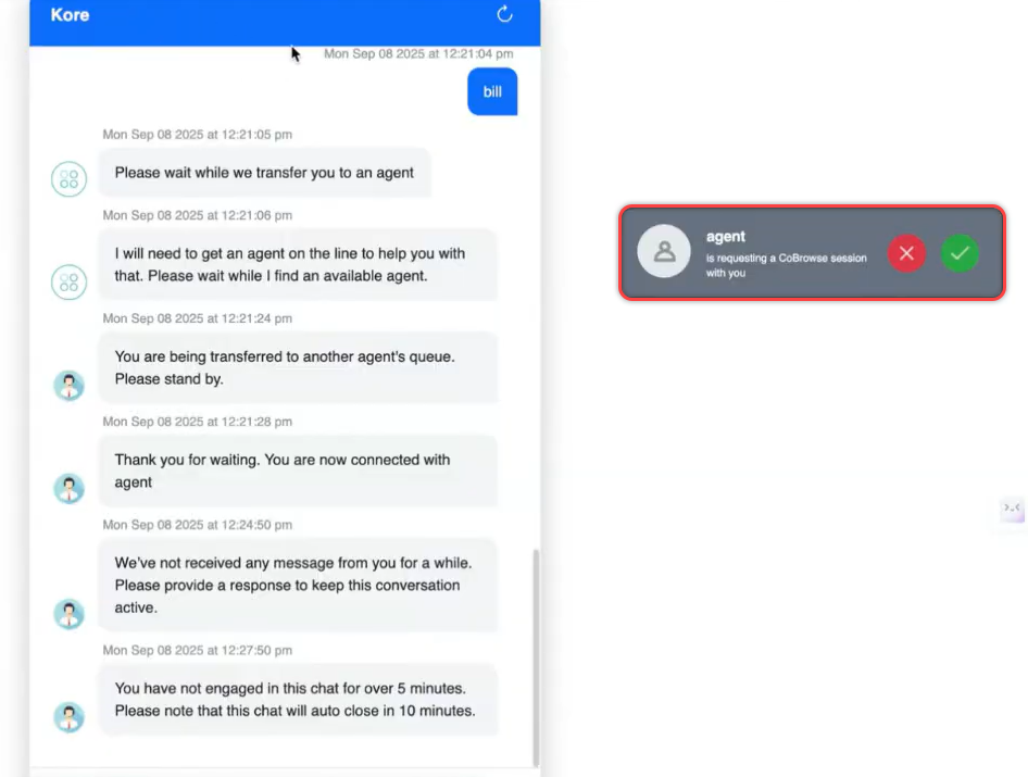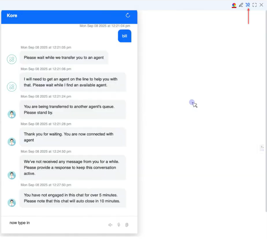 To receive read receipts, and typing indicators, install the AgentDesktop plugin in WebSDK 3.0. The Agent Desktop plugin allows the user to interact with the human agent through the AI Agent and supports the following features: