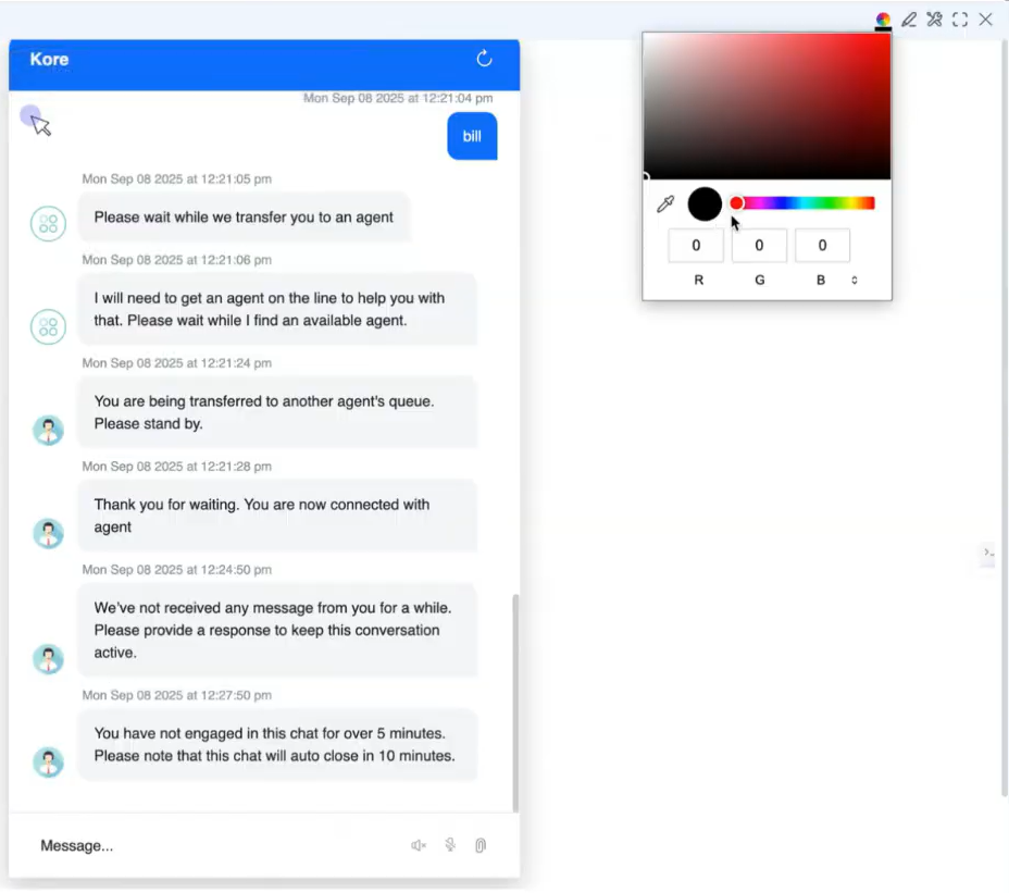When translation is disabled: Responses appear in the conversation language, as set through Agent Utils at the time of agent transfer, ensuring they are not limited to the application language.