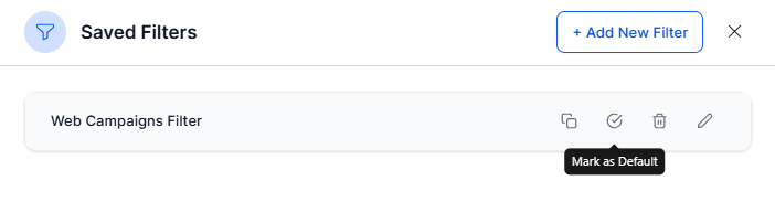 Campaign Managers can create, duplicate, mark as default, delete and edit filters for the campaigns.