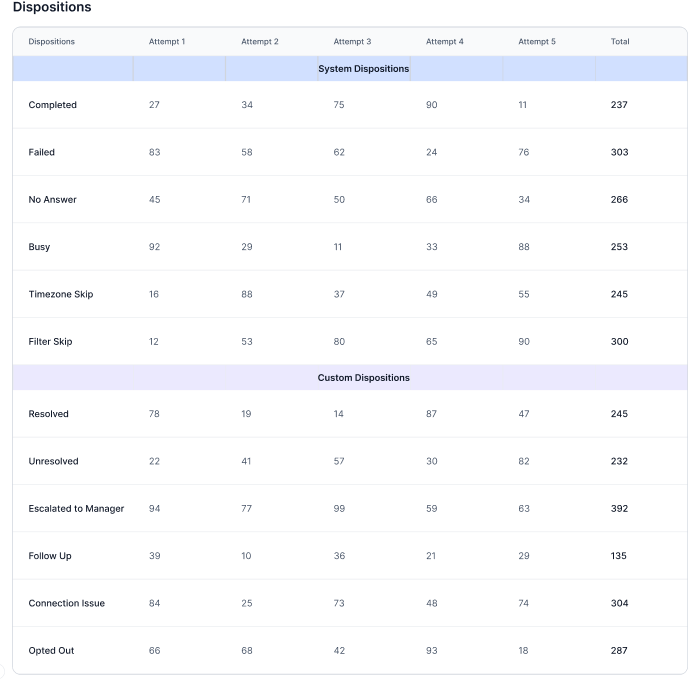 - Connected Calls - Count and percentage of connected calls.