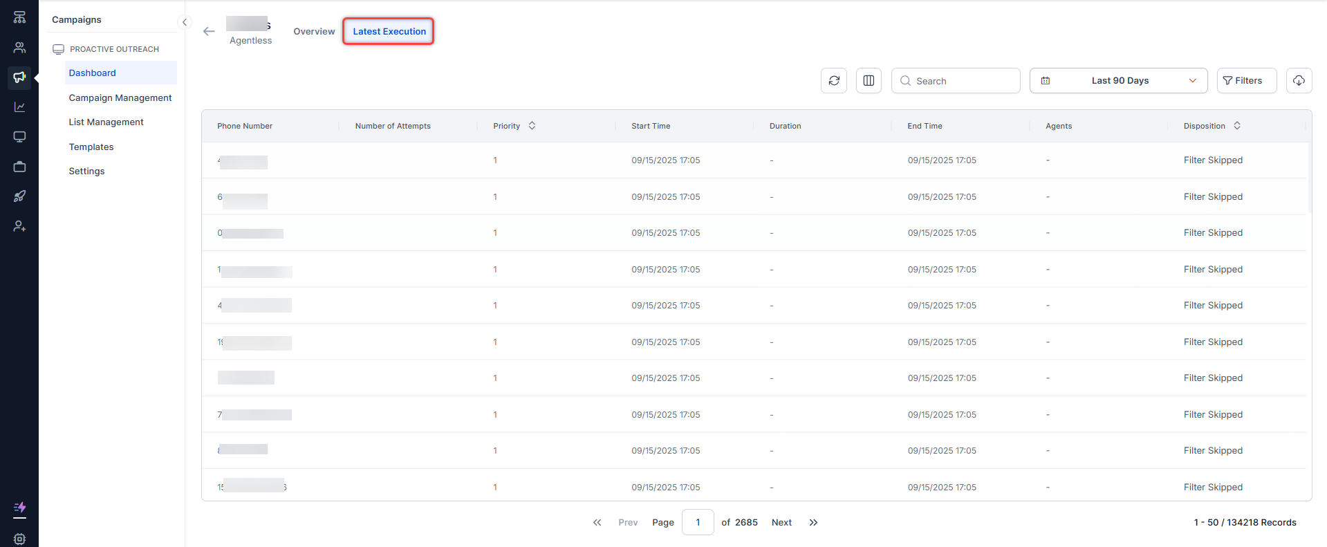 - Campaign type - Agentless (Voice campaigns only)