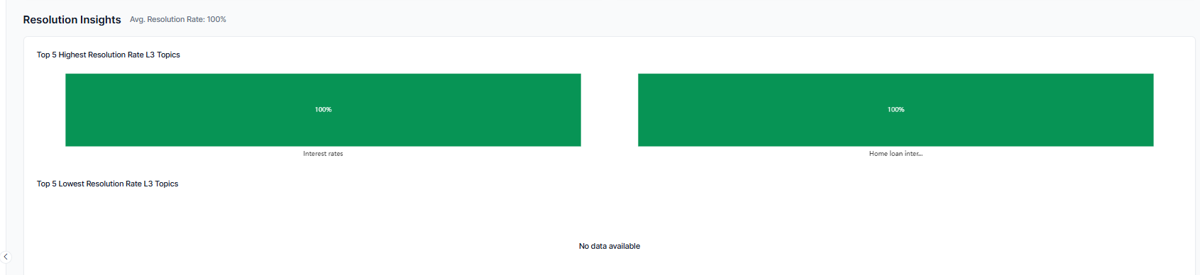 Helps agents understand how effectively they resolve customer issues by showing their resolution rate and performance across topics.