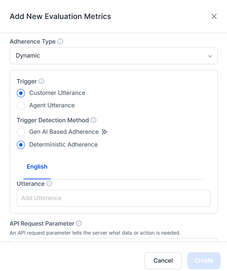 b. Dynamic Adherence: This metric is evaluated only when a trigger happens during a conversation (when a customer or agent expresses a certain intent).