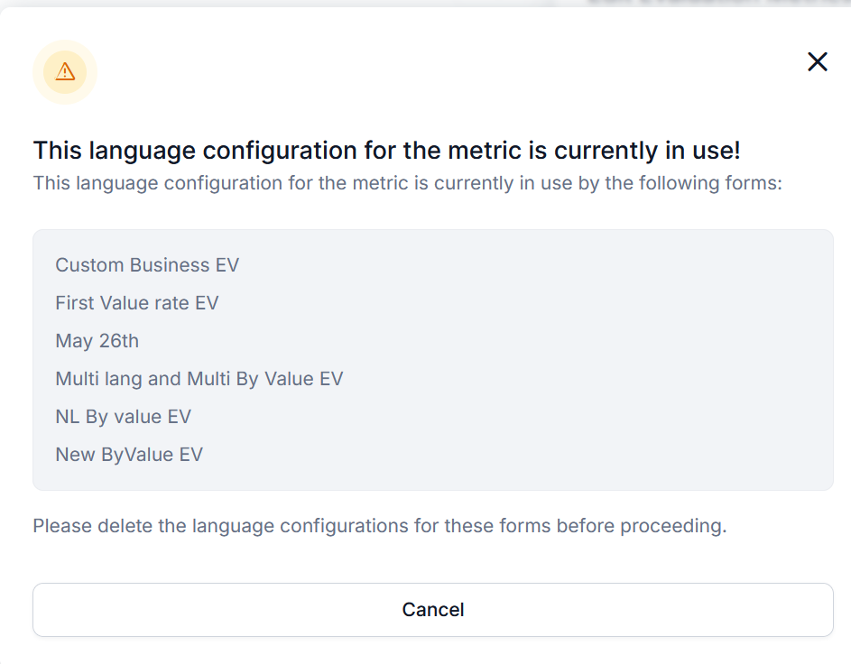 If the metric is used in any evaluation form, the system displays a warning message.