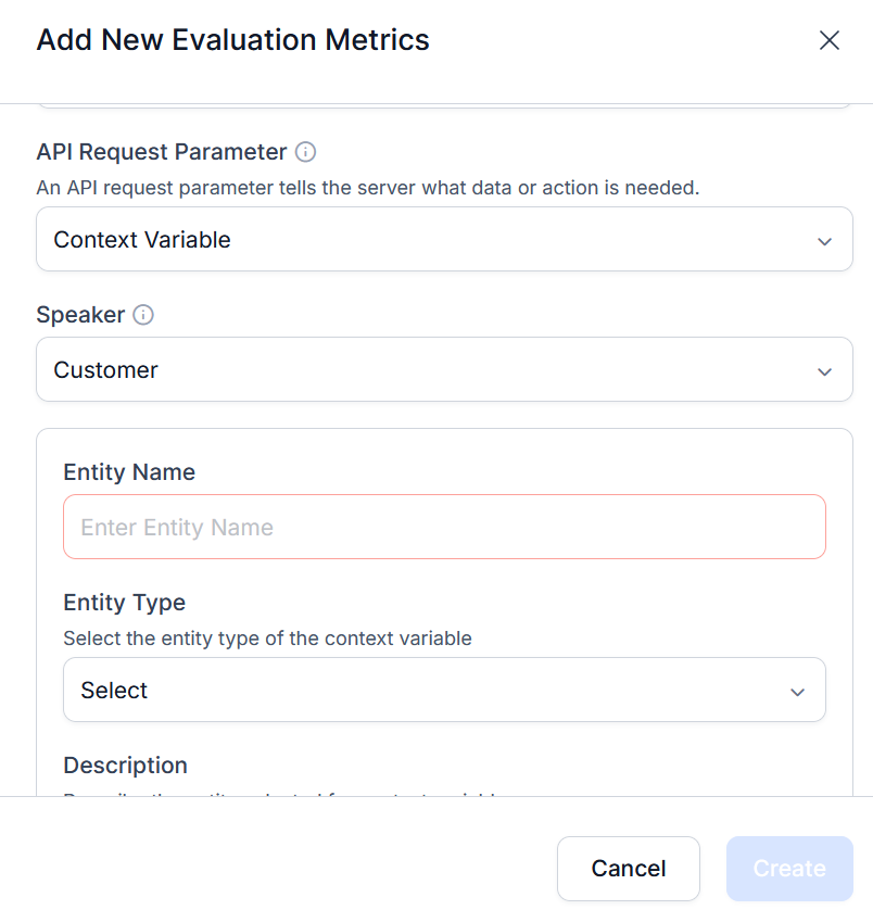 Metric Failure: Indicates interaction has failed when the required call context variable (expected information) is missing or mismatched, or found in the conversation. For example, the agent quoted 6.5% but the system says 7.5%.