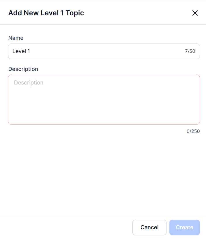 Click Create to add the new level to your taxonomy.